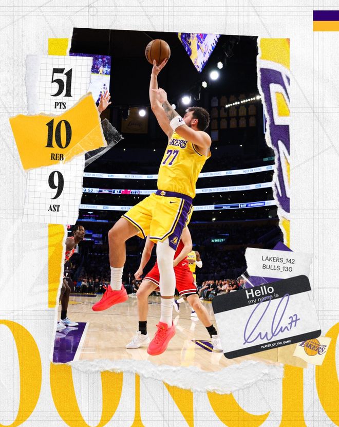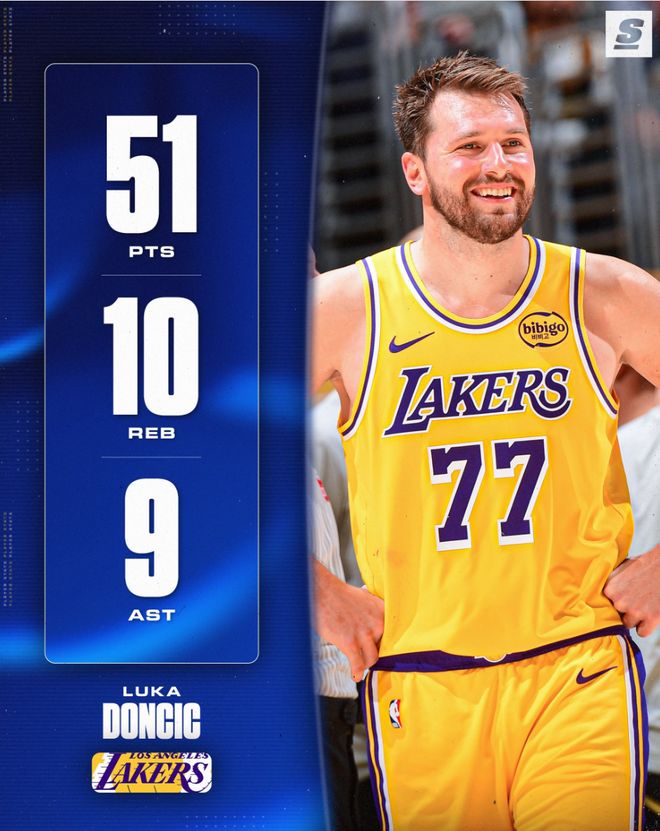 北京时间3月13日,湖人以142-130大胜公牛拿到四连胜,此役后湖人的西部排名升到第三的位置。这场比赛是卢卡-东契奇之夜,他拿到51分10篮板9助攻的准三双数据,只差1个助攻就完成50+三双的超级数据。
