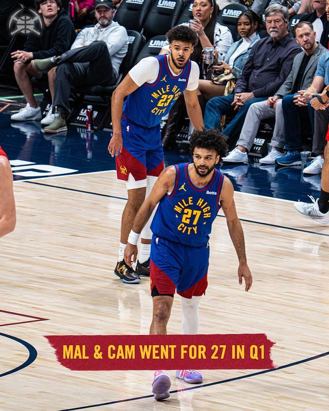 次节比赛,双方进攻火力均是出现下滑,但掘金连续两节单节得分30+。前4分钟掘金仅51-50领先开拓者,并在次节中段56-55领先,约基奇内线得分扩大65-58领先优势。掘金之后继续保持微弱领先优势,掘金单节33-29净胜4分,上半场比赛结束掘金扩大75-69领先开拓者。前两节比赛,约基奇13+10+8、穆雷18分与卡约14分,克林根16+6、阿夫迪亚9分10助攻与罗威12分。