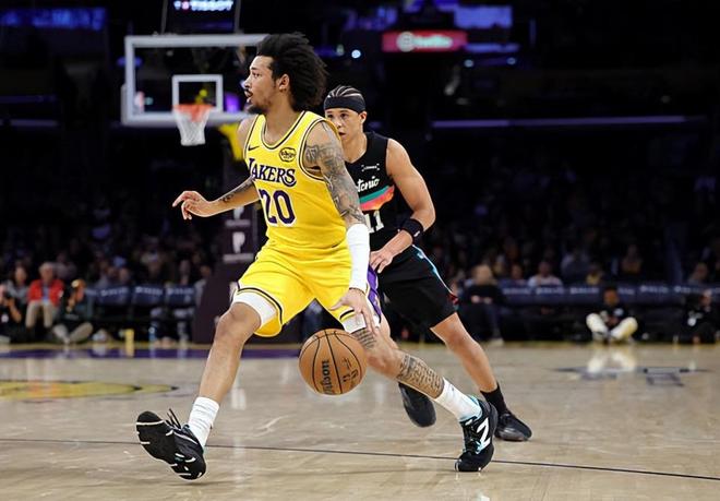 本场比赛中,被湖人下放到NBA发展联盟赛场进行锻炼的双向合同后场球员小尼克-史密斯(Nick Smith Jr.)的表现还是值得肯定的。史密斯全场出场34分钟,投篮12中5,三分线外5中1,得到了11分4篮板5助攻1抢断1盖帽的数据,还有1次失误和3次犯规,正负值为+16。史密斯虽然在外线投篮方面的手感不佳,但是他还是通过其他方式得到了一定的分数,起到了一定的作用。史密斯不仅得到了一定的分数,而且他在传球和组织方面也是起到了一定的作用的。不仅如此,史密斯在防守端的表现也是相当不错的,他也是能够在防守端起到一定的作用的。总体来看,史密斯在本场比赛中算是在攻防两端都起到了自己的作用,为球队的胜利做出了不小的贡献。