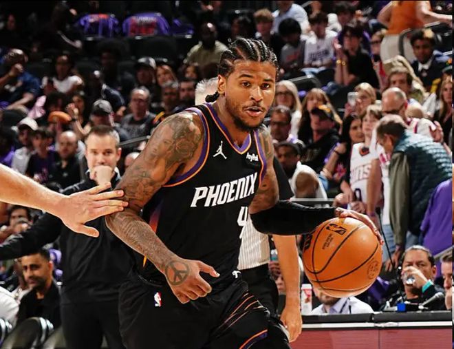 北京时间4月18日,在NBA附加赛中,菲尼克斯太阳以111-96击败金州勇士。此役,杰伦-格林出战40分钟,他20投14中,三分球14投8中,砍下36分6篮板4助攻2抢断3盖帽,正负值+22。