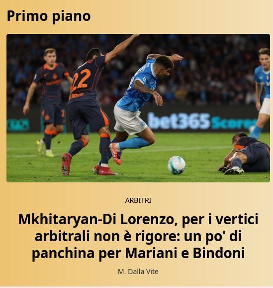 另一次是那不勒斯上一轮客场挑战热那亚,在比赛最后时刻维尔加拉在热那亚禁区内摔倒,裁判并没有直接判罚,VAR介入认为科尔内有踩脚行为,最终那不勒斯凭借这粒点球绝杀热那亚拿到3分。这两次判罚在赛后都被意甲联赛裁判委员会认定为误判,可还有什么意义呢?下次不还是犯同样的“错误”,而且那不勒斯可是实实在在多拿了至少2分,要不然现在至少落后国米11分了!现在国家德比的裁判组名单已经公布了,视频助理裁判是基菲,他在过往执法国米比赛时的口碑可不算好,看看这次会不会搞事情吧!
