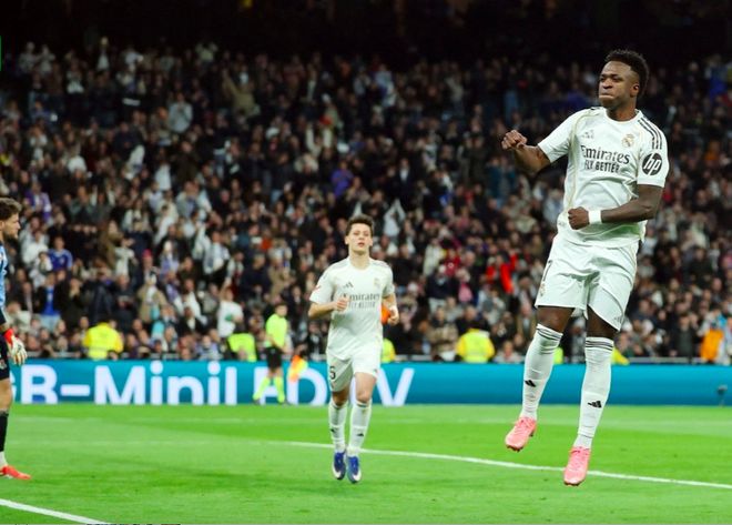 第48分钟,皇马再次获得点球,维尼修斯梅开二度,彻底锁定胜局。