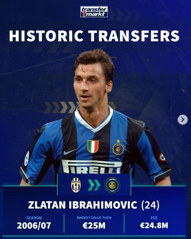 伊布,06/07赛季尤文→国米,转会费2480万欧