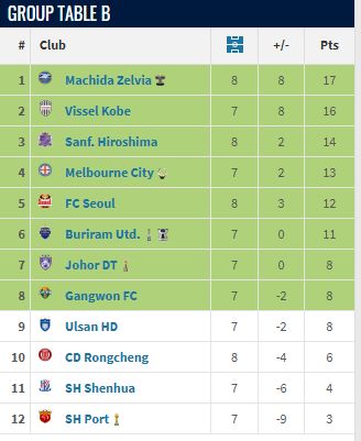 柔佛新山、光州、蔚山分别以8分排名第7、8、9位,成都蓉城不仅最后一轮要战胜町田泽维亚,而且要寄希望于这三支球队丢分。