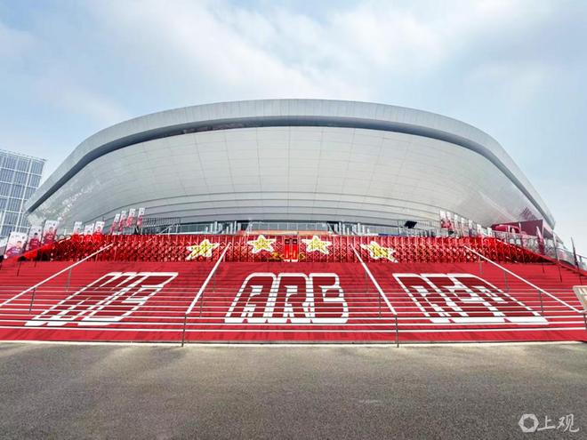 上汽浦东足球场内也完成了备战亚冠、迎接春节的装置布置。
