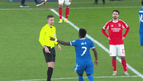 情绪激动的维尼修斯走向场边,比赛被迫中断,几分钟后回到了场上,比赛恢复!