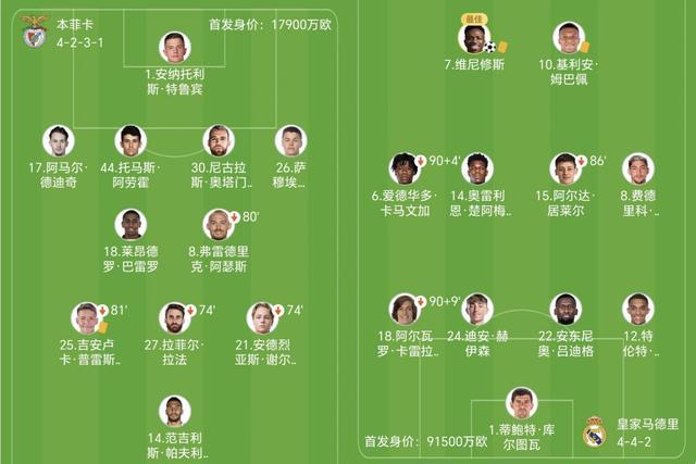 比赛开始后,双方攻防胶着,本菲卡依托主场气势十足,高位逼抢动作不小,皇马稳守阵型寻找机会。姆巴佩多次冲击对方防线未果,维尼修斯被重点盯防。上半场战罢,两队半场互交白卷。