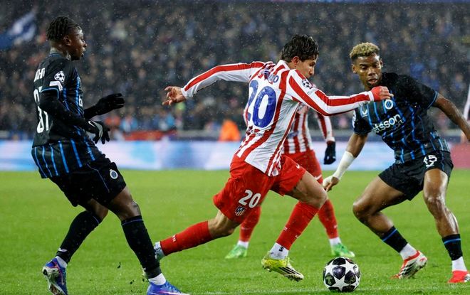 比赛刚开始7分钟,马竞就获得点球机会。阿尔瓦雷斯主罚,他骗过门将,稳稳把球罚进,帮助马竞获得梦幻开局。5分钟后,奥涅迪卡在禁区前沿起脚低射,踢得太正了。门将轻松把球没收。第26分钟,小西蒙尼外围远射,踢高了。随后,贾孔的远射稍稍偏出右侧立柱。第37分钟,阿尔瓦雷斯禁区弧顶处尝试远射,门将倒地把球没收。半场补时阶段,马竞再次进球!卢克曼门前包抄破门。半场结束,马竞2-0领先布鲁日。