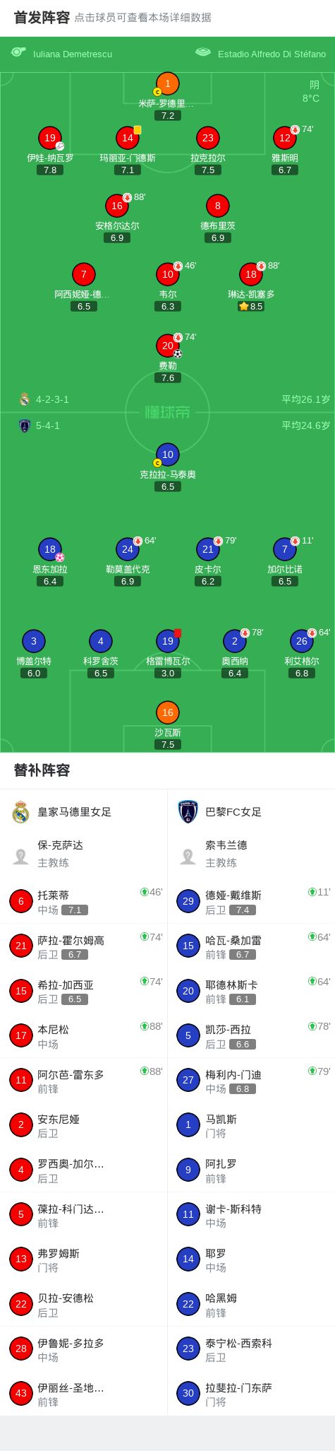 第36分钟,皇家马德里女足球员韦尔将点球罚丢。