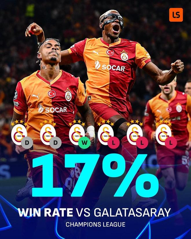 此役欧冠客场0-1输给加拉塔萨雷之后,利物浦在欧冠6次对阵加拉塔萨雷的战绩为1胜2平3负(其中4次客场对阵加拉塔萨雷战绩为1平3负),胜率仅为17%。