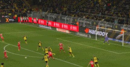 比赛第83分钟,萨比策右侧精准传中,斯文松顺势将球踢进门中,多特2-2追平!