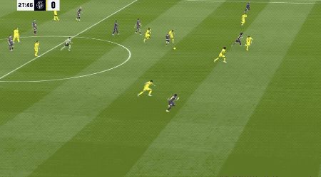 第48分钟,比利亚雷亚尔的角球制造威胁,由于拉菲尼亚拖在了后面,盖耶的进球并不越位。