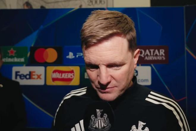 欧冠1/8决赛首回合,纽卡主场1-1战平巴萨,纽卡主帅埃迪-豪赛后接受了俱乐部媒体的采访。