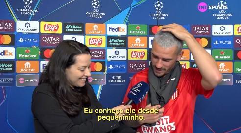 欧冠1/8决赛首回合,马竞主场5-2战胜热刺,格列兹曼在接受TNT体育巴西频道赛后采访时被问及菲利佩。