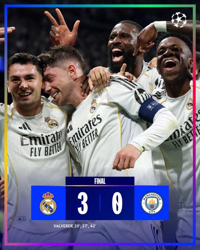 此役主场对阵曼城,首发出战的巴尔韦德在比赛第20分钟、第27分钟和第42分钟各入一球,帮助皇家马德里最终3-0击败对手。