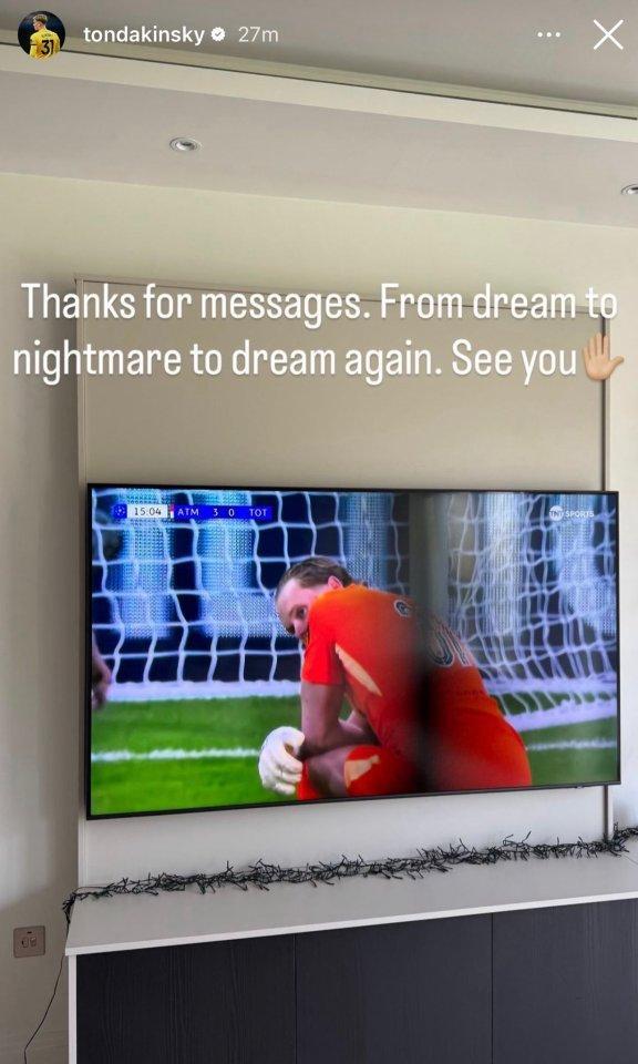 最绝的是在比赛结束不到24小时后。这哥们儿居然在Instagram上发了一张自己电视屏幕的动态,看样子竟然是在重温这场“下饭比赛”! 他还在照片上配文:“感谢大家的信息。从美梦到噩梦,然后再回到美梦。回见。”不得不说,这心理素质确实够厚实。