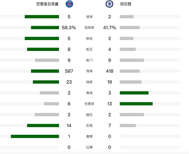 北京时间3月12日凌晨,欧冠八分之一决赛首回合上演去年世俱杯决赛的翻版,巴黎圣日耳曼坐镇主场,迎战切尔西。第10分钟,内维斯头球助攻巴尔科拉打破僵局。第28分钟,恩佐助攻古斯托扳平比分。第40分钟,登贝莱完全利用个人能力破门得分。第57分钟,恩佐上演传射建功。第74分钟,约恩森送礼,维蒂尼亚挑射破门。第86分钟、第94分钟,K77梅开二度。最终,巴黎圣日耳曼主场5-2战胜总身价11.6亿的切尔西,报了世俱杯决赛失利的一箭之仇。
