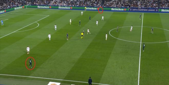 所以,虽然皇马此役没有标准的中锋球员,但他们利用到了曼城后腰身侧的空间,从这里完成了进攻加速,这在此前曼联战胜曼城的比赛中,已经被曼联证实有效了。