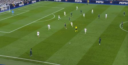 而在第17分钟,皇马则通过门前找到了边路的巴尔韦德,后者回敲之后,继续从罗德里和贝尔纳多-席尔瓦身侧完成了横移: