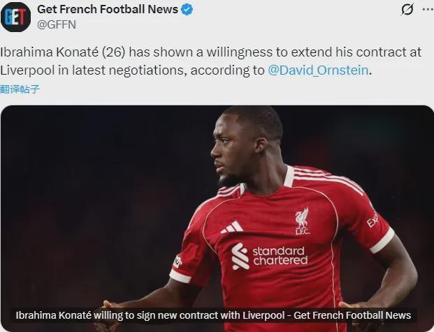 TA记者DO消息,科纳特愿意和利物浦续约,这名26岁中卫当下的合同即将到期,而相关谈判正在进行中。