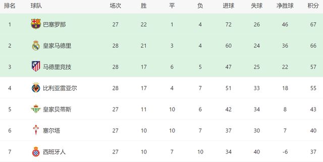 截至目前,皇马在西甲继续排名第二,榜首2强的差距,也缩小到1分。接下来,压力来到巴萨身上了,本轮他们将在主场迎战塞维利亚,这场比赛巴萨没有任何退路,他们必须击败对手,继续保持4分的领先优势,否则的话,巴萨未必就能顺利夺冠,因为后面他们还有至少4场恶战。