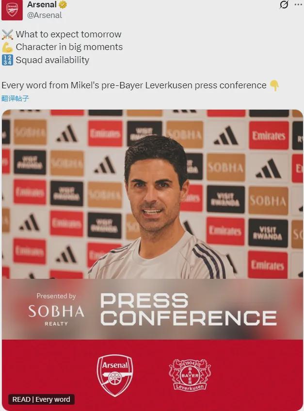 阿尔特塔出席了赛前新闻发布会,我们来看看阿森纳主帅谈到的主要内容。