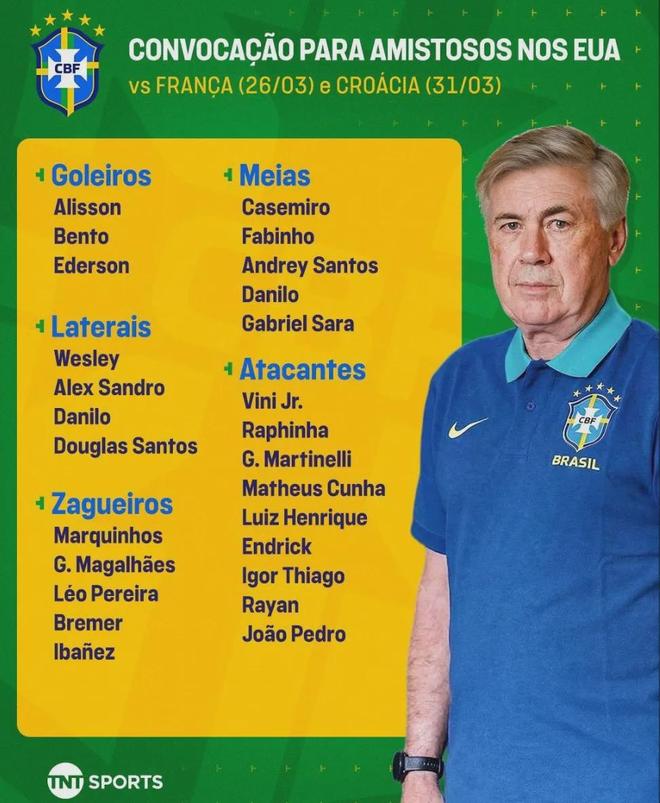 加布里埃尔和马丁内利入选了最新一期巴西国家队大名单,热苏斯落选。