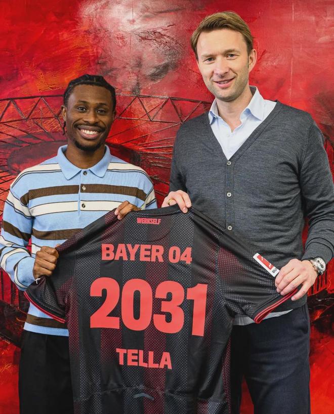 官方:勒沃库森宣布和26岁的边锋纳坦-泰拉就续约到2031年达成了协议。
