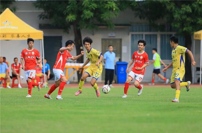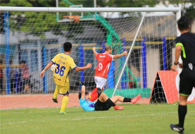 关键时刻,容桂鱻鱼栈队顶住压力、越战越勇。第70分钟,王甲强再度挺身而出,门前抢点完成梅开二度,帮助容桂再次取得领先;第85分钟,容桂97号球员陈俊一脚劲射破门,锁定胜局,将比分定格为3:1。