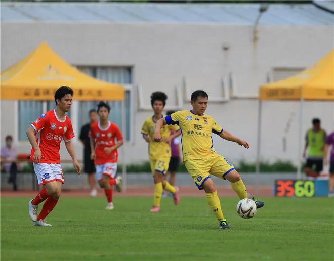 上半场尾声,主场队伍迎来突破。第43分钟,容桂9号球员王甲强抓住机会率先破门,帮助球队打破僵局,容桂以1:0领先结束上半场。