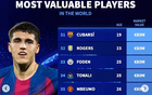 北京时间3月29日,在更新了欧洲五大联赛球员的身价之后,德转列出了目前身价足坛身价排名前50的球员,亚马尔、哈
